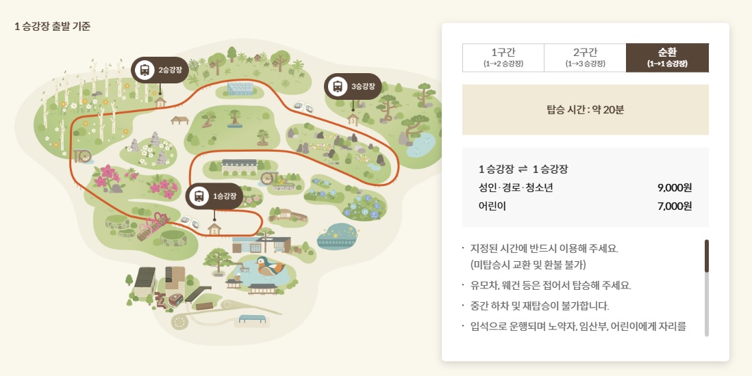 - 모노레일 요금: 성인 5,000원 / 어린이 4,000원 (1구간 기준)